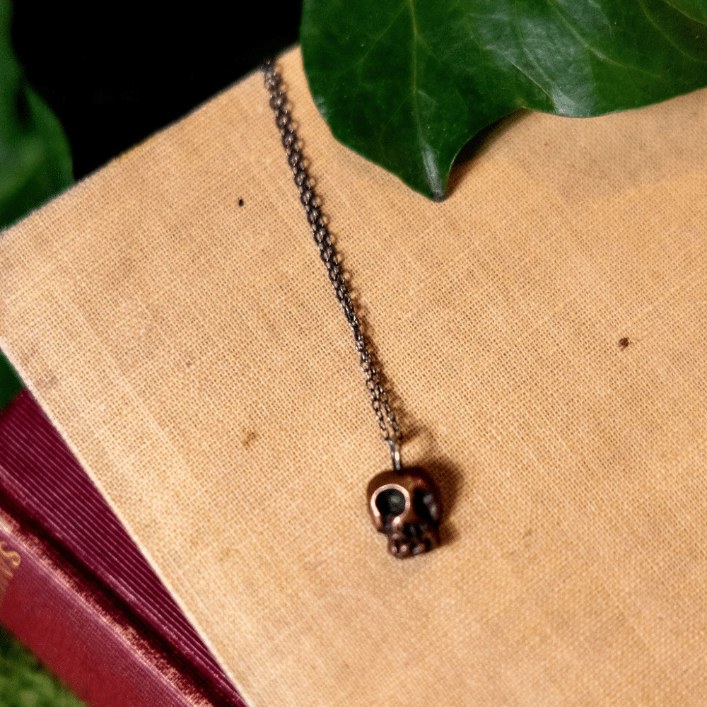 Measuring approximately 10mm x 10mm, the skull is cast in your choice of silver or copper metal clay and paired with an 18โ€ณ sterling silver chain.