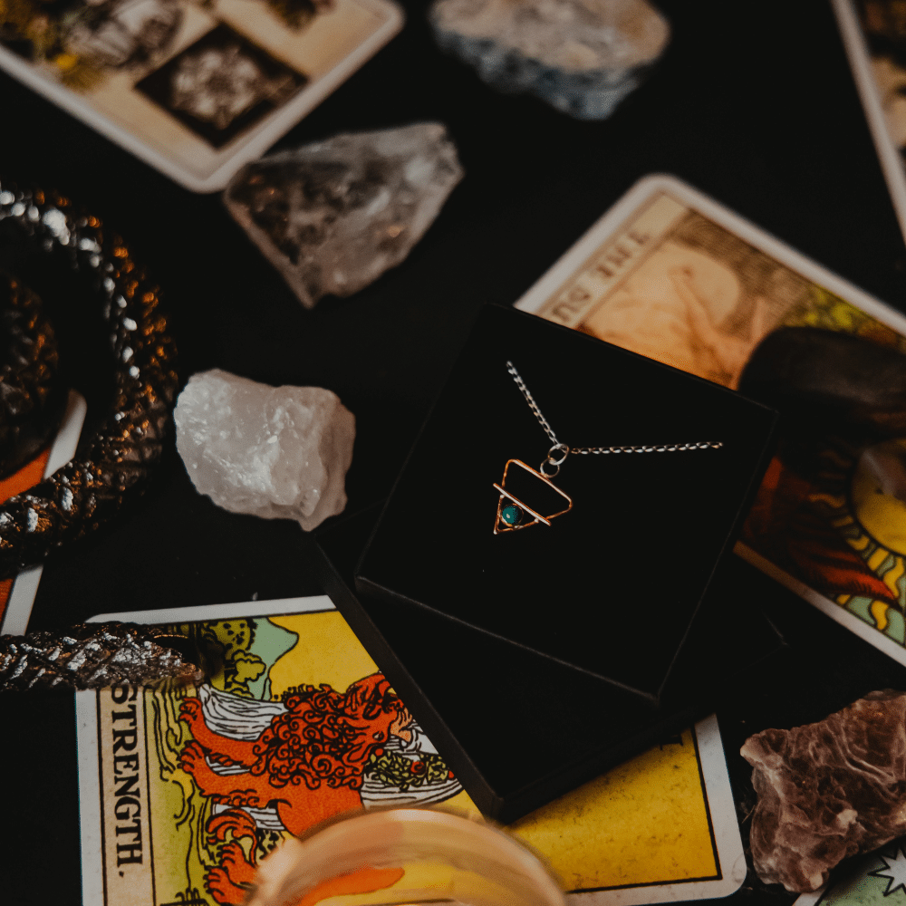 smiling red haired lady in a copper leather apron sat in front of a jewellery bench